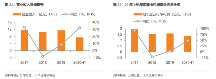 主营产品市占率逐步走强,20Q2营收业绩高增。20Q2单季度归母净利润达到1.1亿元,同比大幅增长117%,毛利率达到38%,远超19年的31%。近几年随着成本控制能力提升和规模效应的体现,毛利率逐步提高。