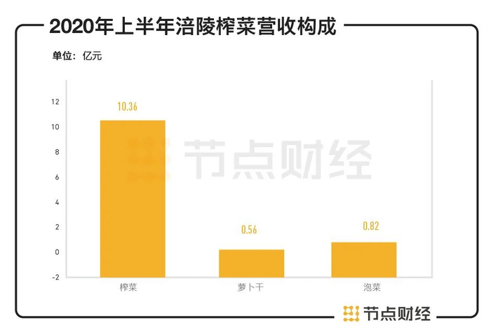 2020年上半年,泡菜占总营业收入的6.85%,榨菜占86.54%。也就是说,在未来很长一段时间内,榨菜都将是涪陵的主要收入。