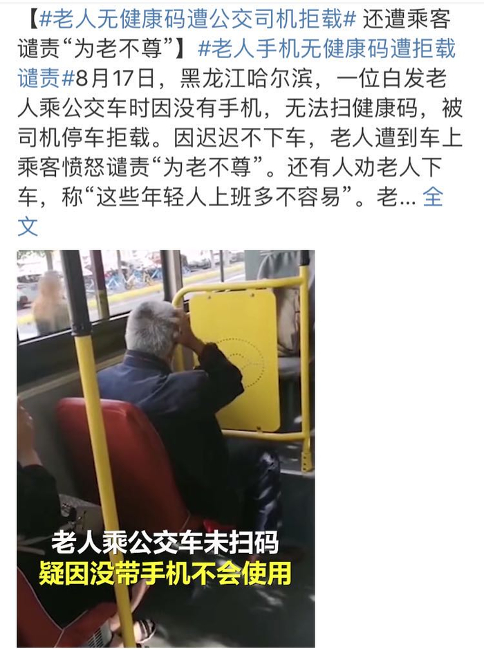 老人因没有健康码被公交司机拒载