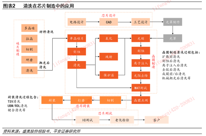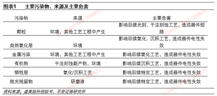 1) 在硅片制造环节,经抛光后的硅片,需要通过清洗工艺保证其表面的平整度和性能,从而提高在后续工艺中的良率。