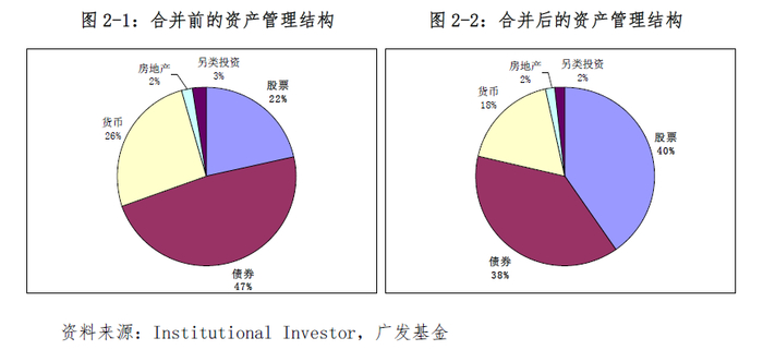 合并前,贝莱德在资产管理上一向过于偏重固定收益产品,固定收益类资产管理规模达3039亿美元,而权益类资产管理规模不过373亿美元(2005年年报数据),合并后,权益类资产管理规模达到3927亿美元(2006年年报数据),所占比例从8%提高到约35%。