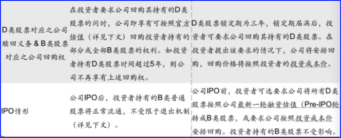 关于D类股(即无利债),在三年锁定期满后,投资者可要求大疆进行回购,价格按投资成本价计。