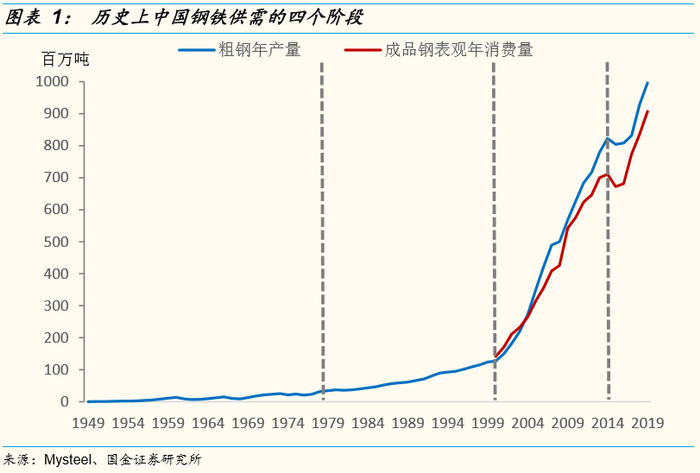 2.1 新中国成立以来,中国钢铁行业经历了四个阶段