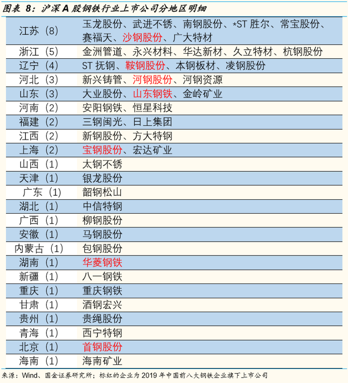 二、钢铁:区域聚集在河北、江苏和山东等地,上下游集群化趋势渐明显