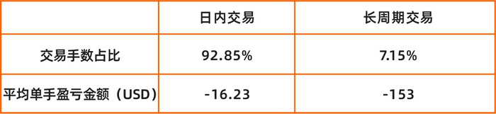 初看,日内交易的平均单手盈亏情况比长周期交易好很多,但魔鬼总是在细节之中。