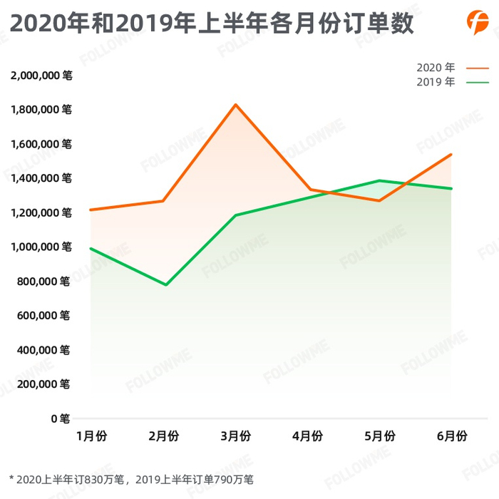2020上半年,FOLLOWME 交易社区1月至6月每月订单数均超过120万笔,共计830万笔,比 2019 年同期增长了17.1%。值得注意的是,3月份发生的黄金闪崩行情,使得黄金价格出现巨大波幅,订单数同比2019年3月份上升56%,说明交易者在黑天鹅事件中更多的选择是参与,而不是回避。