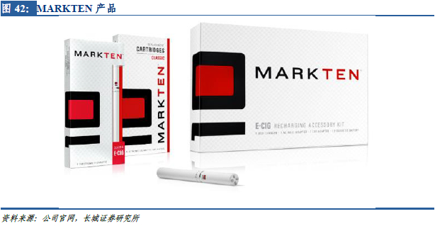 NU MARK是国际知名烟草集团奥驰亚的全资子公司,成立于2013年。2014年NU MARK的产品MarkTen正式上市,2014 年底在美国市场份额达到5.5%(位居第4),17 年提升至8%,18年1月占比达到11.4%。2018年底奥驰亚宣布彻底放弃VAPE型电子烟。NU MARK旗下所有电子烟停产。