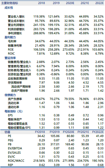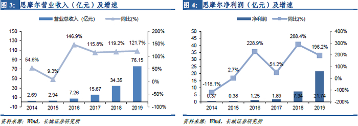 业绩高速增长,连续四年实现倍增。公司业绩自2016年起保持高速增长,营业收入由2015年的2.94亿元增长至2019年的76.11亿元,2015-2019复合增速达125.6%;净利润由2015年的3800万元增长至2019年的21.74亿元,2015-2019复合增速达175.0%。