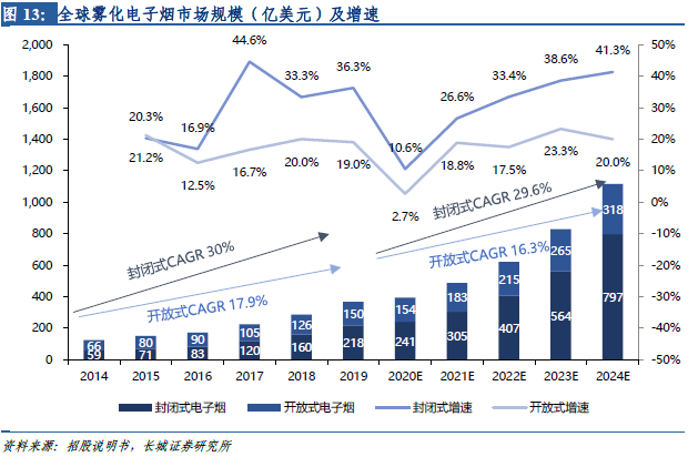 2.1 行业概况:下游雾化电子烟规模高增,渗透率低长期空间广阔