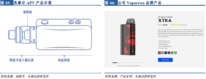 公司OBM业务产品为APV、APV组件及零配件。旗下拥有Vaporesso、Renova、Revenant等自有品牌,其中Vaporesso品牌知名度在全球排名第三(数据来自招股书)。