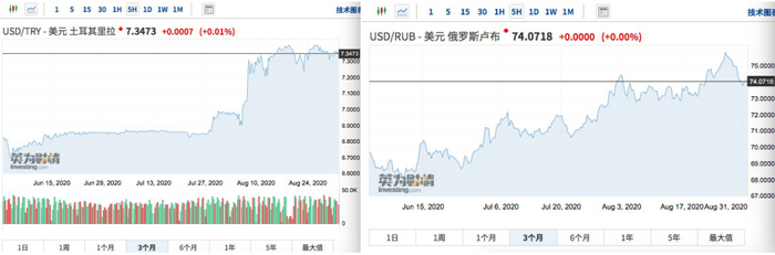 值得注意的是,尽管美元近来持续贬值,但并非对所有国家都如此。一些新兴国家遭受疫情重创,美元相对于这些国家的货币反而在升值。例如,就在美元指数跌幅明显的近三个月来,美元兑土耳其里拉、美元兑俄罗斯卢布、美元兑巴西雷亚尔都明显升值,但同期美元兑人民币则贬值显著。中长期看,汇率是一国基本面的反映,相比于其他新兴经济体,市场用汇率给中国经济基本面投下了“信任票”。