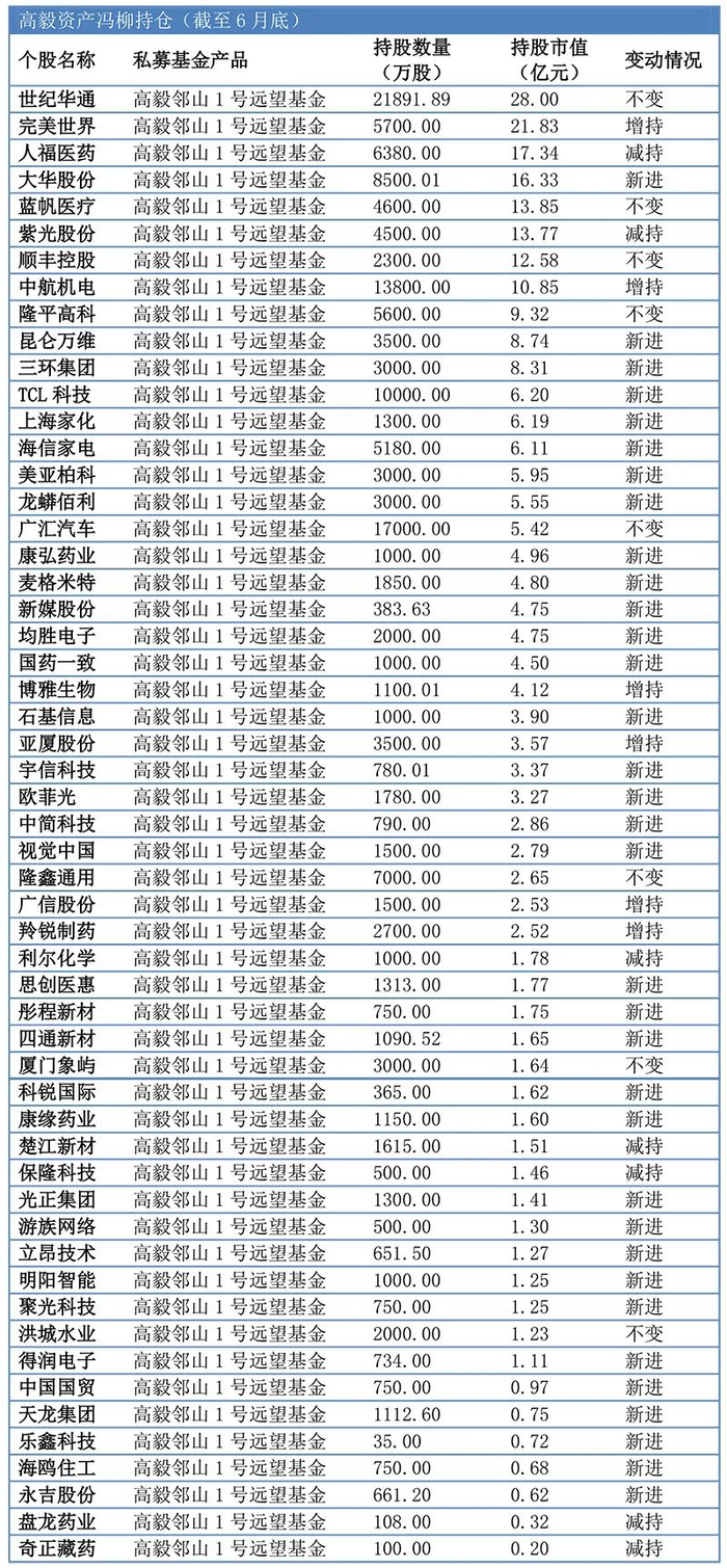 私募仓位回归2014年底水平 冯柳等私募大佬的最全持股名单来了