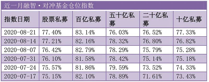 私募排排网数据显示,截至8月21日,股票私募仓位指数为77.4%,环比上一周上升了0.19个百分点,这已经是该指数连续6周上涨,且仓位指数已连续24周超过七成。