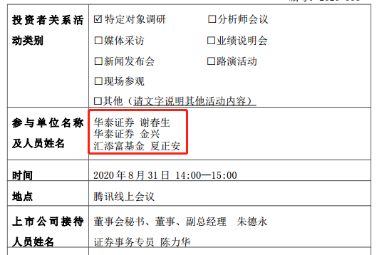 周二安信证券马良、交银施罗德基金杨金金也参与了公司调研。