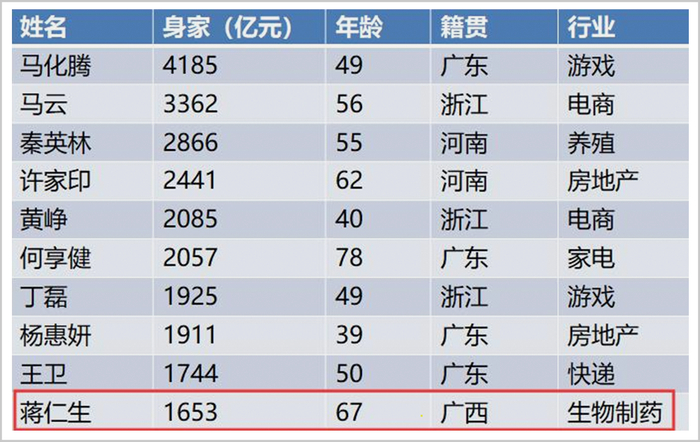 8月,海天味业“酱油大王”庞康在福布斯富豪榜上第10位的宝座,已经被智飞生物掌门人蒋仁生抢了过去。2月时,蒋仁生身价才614亿,半年后,就暴涨了1000亿。