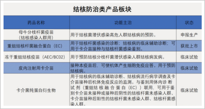 2020年3月,智飞自研的“微卡”(母牛分枝杆疫苗)完成技术评审,并进入最后的上市生产审评冲刺阶段。中国作为结核病新发患者数全球第二的大国,一旦将“微卡”这一新型结核疫苗投产,预计在5-10年内能形成30亿的规模,市场极其广阔。