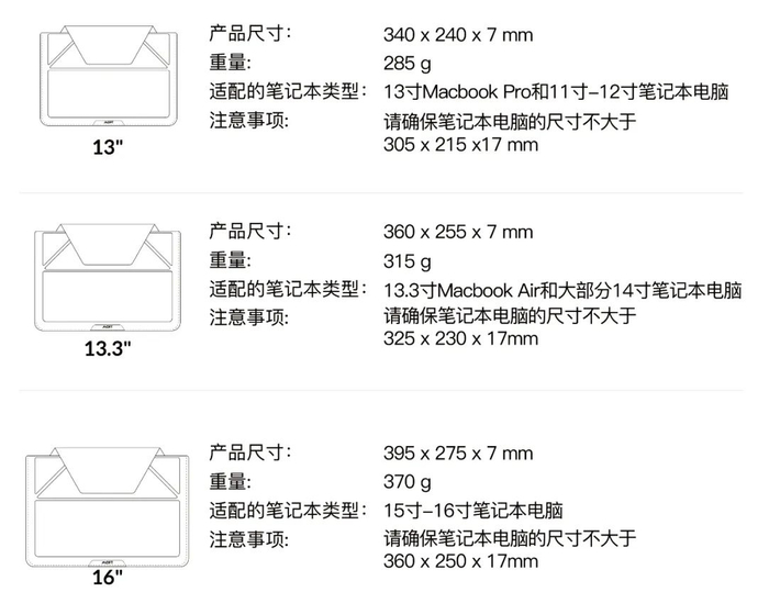 ①适合13英寸的MacBook Pro,及不大于它的笔记本电脑