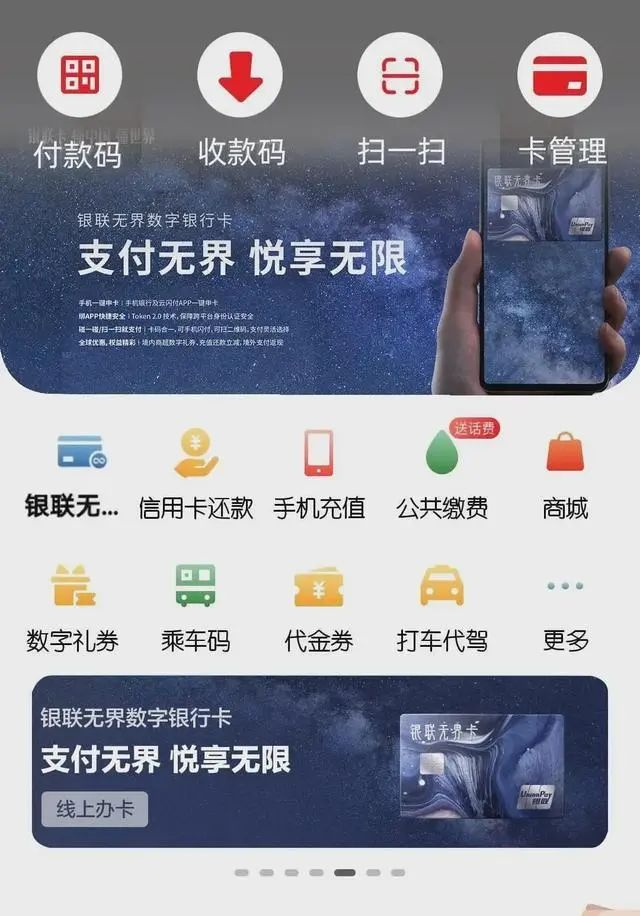 今年8月11日,银联国际宣布,与香港虚拟银行livibank合作,发行银联虚拟借记卡。8月15日,百度联合百信银行以及中国银联发布国内首张数字银行卡“百度闪付卡”。