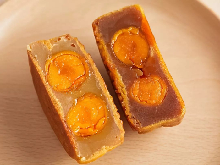 美心的莲蓉月饼,在传统莲蓉月饼的基础上,还加入了金黄流油的双蛋黄。