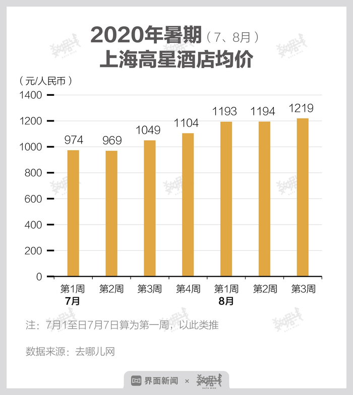 不过,从7月初至8月下旬,上海高星酒店价格出现小幅回升。截至发稿时,上海深坑酒店普通房型在携程上的间夜价格,已经恢复到3700多元。