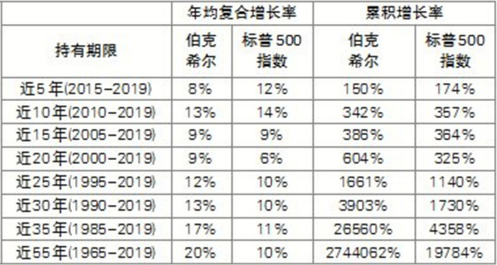 表1 伯克希尔与标普500指数增长率比较