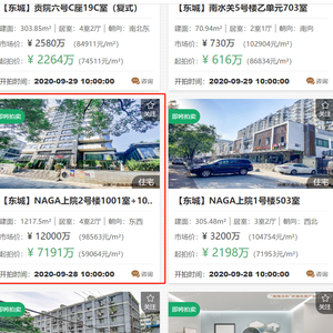 这2套将于9月28日开始拍卖的豪宅,位于北京二环路内东直门大街NAGA上院2号楼1001室、1002室。瀚海法拍网显示,“NAGA上院99席专为鼎级人士打造的高档住宅,开发商抱着‘为一群好朋友,找一群好邻居’的理念盖房,最小面积300平方米,最大面积600平方米。”