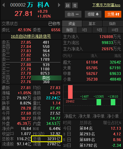 总市值:1个海天味业=2个万科A
