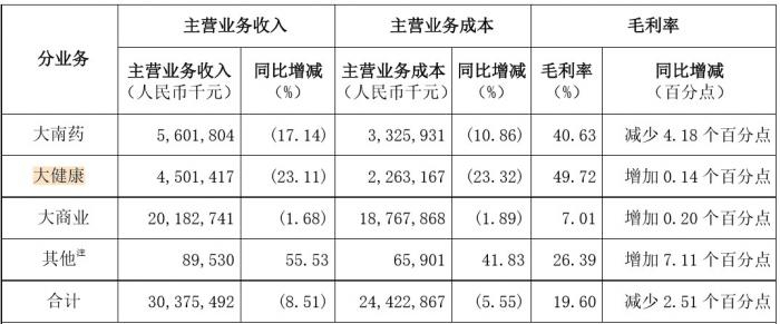 上半年,王老吉大健康公司净利润8.41亿元,同比减少25%。尽管如此,大健康仍然是白云山在整个上半年毛利率最高的业务板块,整体毛利率为49.72%,同比微增0.14%。