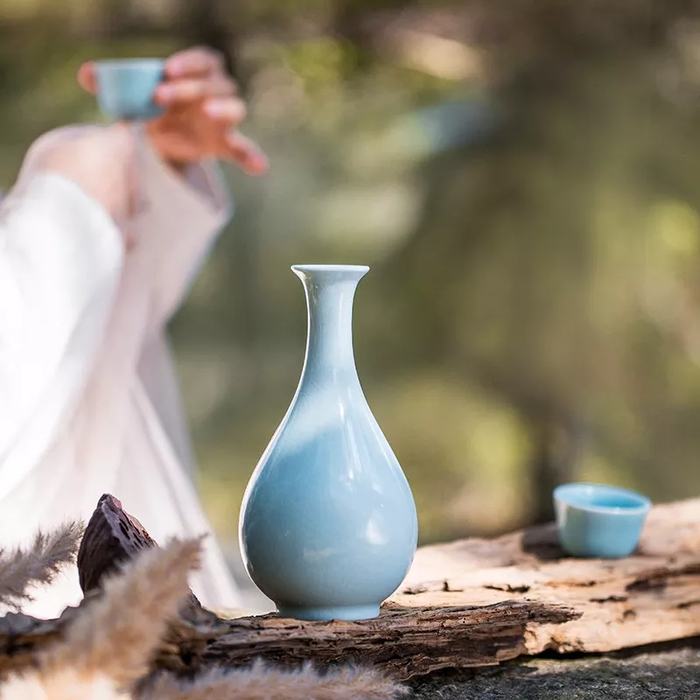 玉壶春瓶如今虽用于陈设观赏,但它在宋代时本是实用酒器。让汝瓷日常化,回归生活,重新与酒搭配,宜赏宜用,才是他烧瓷的初心。