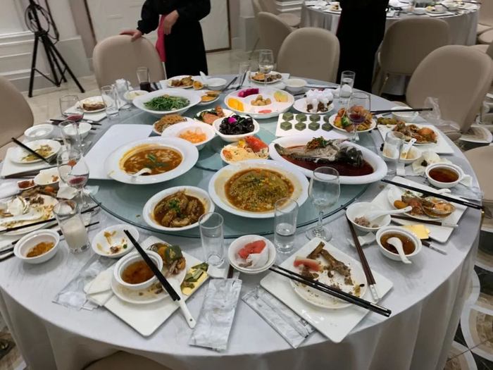 “比如现场女士居多,她们可能对主食不感兴趣,后期就会多准备蔬菜、沙拉。到了宴席尾声,我们也会适当减少菜品供应量。中式围席更讲究排场,像鱼类、大蹄髈一般一上就是一整个,这种‘大菜’可能吃了几筷子,剩下的就浪费了。”宋歌说,“那些不适合摆在中式餐盘中的小份鱼块、鸡块、火腿切片,却经常在自助餐中出现,宾客可以根据自己的喜好和食量按需取餐。”