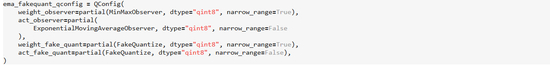 在配置使用上,用户需要显式指定针对 weight、activation 分别使用哪种 Observer 和 FakeQuantize,比如: