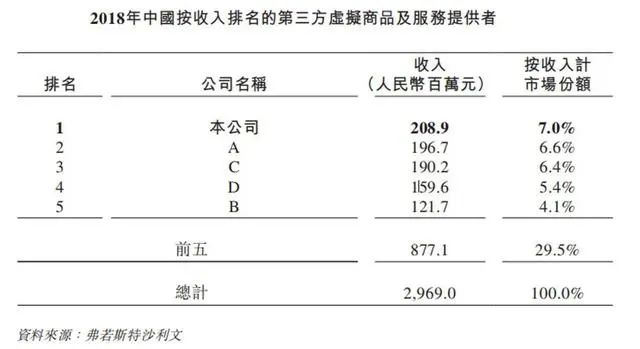 福禄网络所处的行业增长近几年还是不错的。根据弗若斯特沙利文的资料,中国虚拟商品及服务市场的GMV由2014年的人民币6,456亿元增至2018年的人民币11,905亿元,复合年增长率为16.5%。