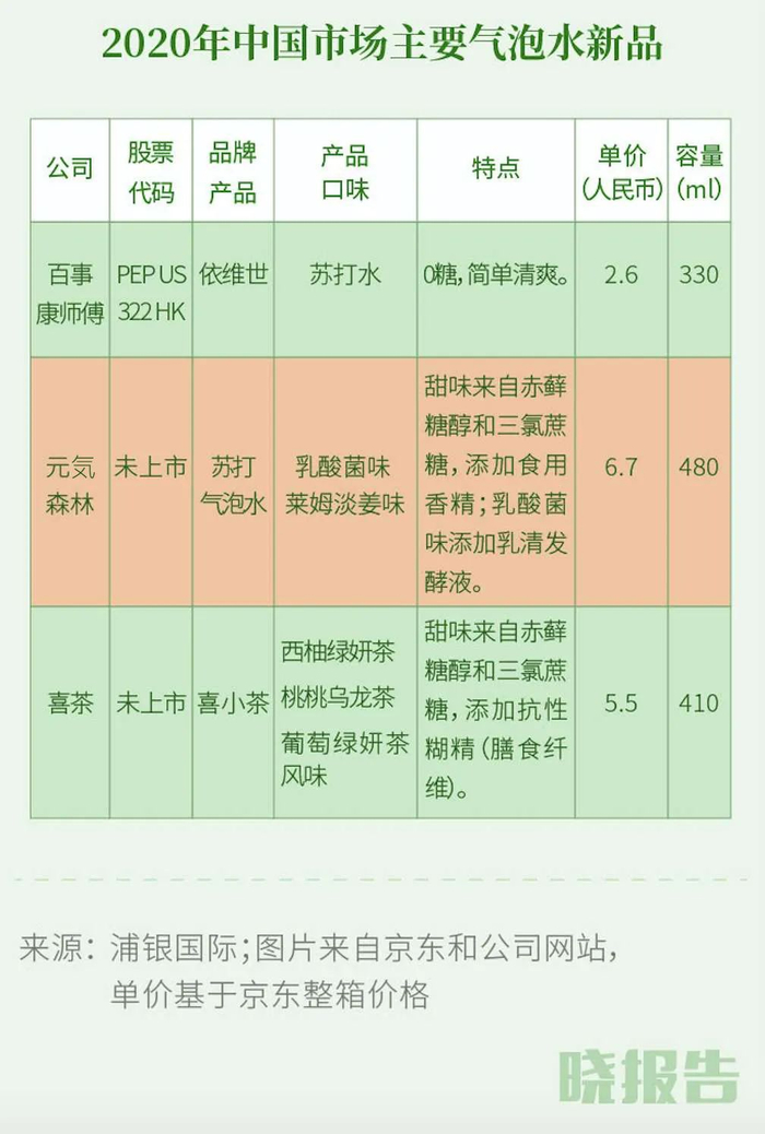 对于规模达百亿级的无糖饮料市场,越来越多的品牌开始进入赛道抢夺蛋糕。喜茶推出子品牌“喜小茶”, 伊利推出伊然乳矿气泡水,健力宝也以微泡水作为20年首推新品。