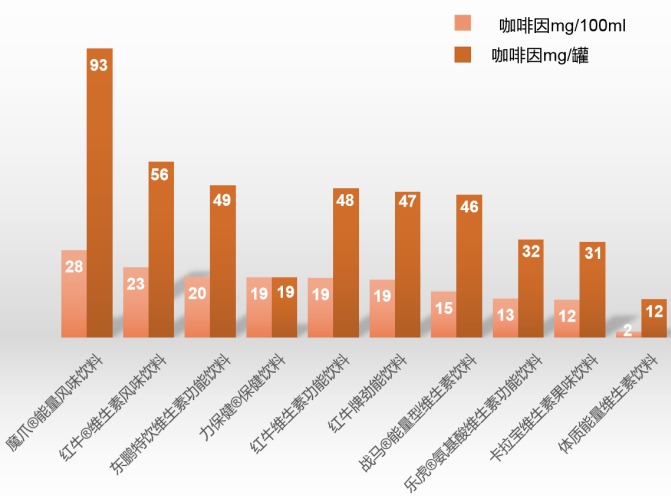 ▲功能饮料咖啡因含量
