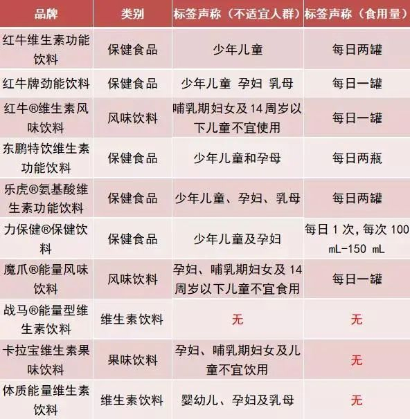 ▲2款红牛营养成分对比表