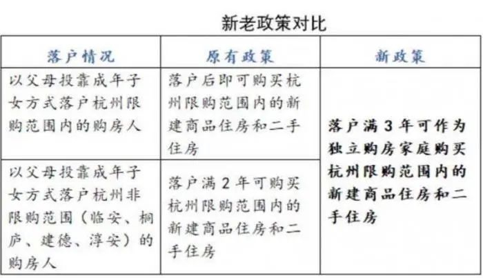 4.限购:父母投靠子女落户杭州的,须满3年方可取得购房资格;