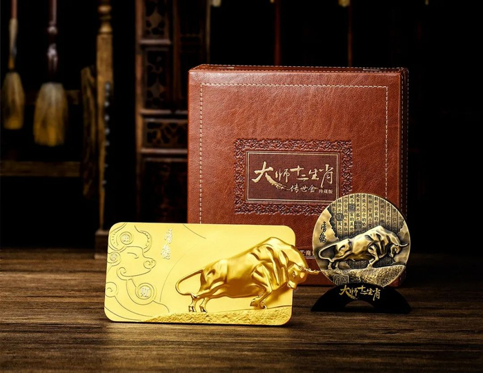 工行此次首发的《大师十二生肖传世金·奋进牛》是该系列的第二款产品。该款产品套装包含金条和铜章两大主体,在创作和工艺上都较去年有了新的突破,其中金条采用以中国传统的“失腊法”与现代创新工艺完美结合,让潘鹤大师刻刀倾注的“奋进牛”,拔金而起,全新冲破边框的造型,充满了视觉美感和冲击力。