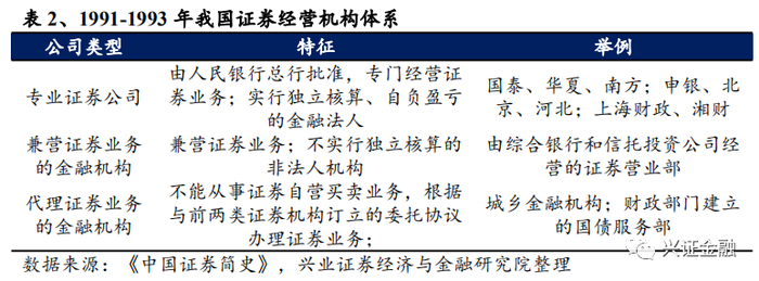 1993年为抑制金融乱象、防范系统性风险确立分业经营体制。1993年前我国金融业自发选择混业经营、混业监管的道路,证券业参与方除了专业证券公司,还有银行、信托等其他金融机构,形成了一个多层次的隶属于不同系统的证券经营机构体系。但由于1992年我国出现房地产热和证券投资热,银行大量信贷资金通过同业拆借流入证券市场,为抑制金融乱象开始实施金融分业政策。1993年12月《国务院关于金融体制改革的决定》规定对保险、证券、信托银行实行分业经营;随后1995年《商业银行法》和《保险法》出台,1998年《证券法》出台逐步确立“分业经营、分业监管”的经营体制。据统计,这一阶段有763家证券交易营业部在监管机构的要求下从原来所属的商业银行、保险公司、财务公司、租赁公司等母体中分离出来,并入了证券公司或信托投资公司。