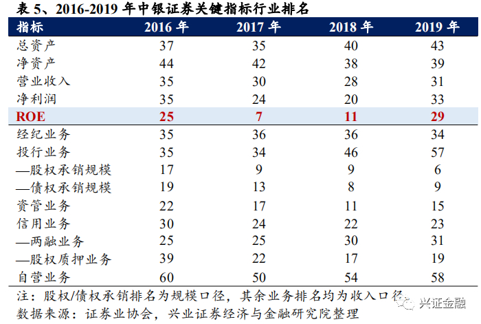 4)信用业务:公司在两融业务上并没有太大优势,而过往股权质押业务的银证合作模式一度为公司信用业务的重要增长点,同时推测公司可能受益于银行的客户信用体系白名单,业务踩雷概率大大降低,因此在2018年股权质押风险大范围爆发的背景下,中银证券的股权质押业务受影响相对较小,行业排名上升至前20名。