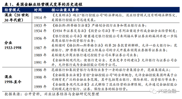 1.1、美国金融混业驱动力:经济发展和金融创新