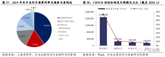 信用产品以CRWM为主,券商创设占比8.3%。信用衍生品是指信用风险缓释合约(CRMA)、信用违约互换(CDS)、信用风险缓释凭证(CRMW)、信用联结票据(CLN)等用于管理信用风险的基础性衍生产品。自2018年10月至2020年6月末,创设的CRMW共计195只,实际发行规模合计228亿元。其中,由商业银行创设的CRMW合计168.64亿元,占市场规模的74%;由中债增信创设的CRMW合计25.35亿元,占比11%;由证券公司创设的CRMW合计19.98亿元,占比8.3%;其余为中债增信与商业银行联合创设。