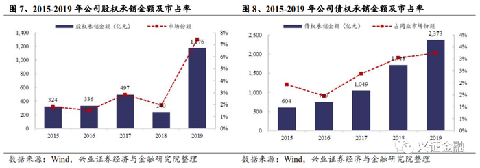 1) 投行业务:中银证券在股债承销规模上均跻身行业前10,与大股东中国银行在重点客户导流方面协同优势显著,例如:2019年公司包揽中国银行优先股项目,累计融资规模1,000亿元,创下境内市场年度最大规模优先股发行记录;公司牵头中国银行2019年无固定期限资本债券项目,发行规模400亿元,引领了商业银行债券型其他一级资本工具的创新。公司投行项目规模较大,而数量相对较少,发行费率较低,因此投行业务收入排名靠后。
