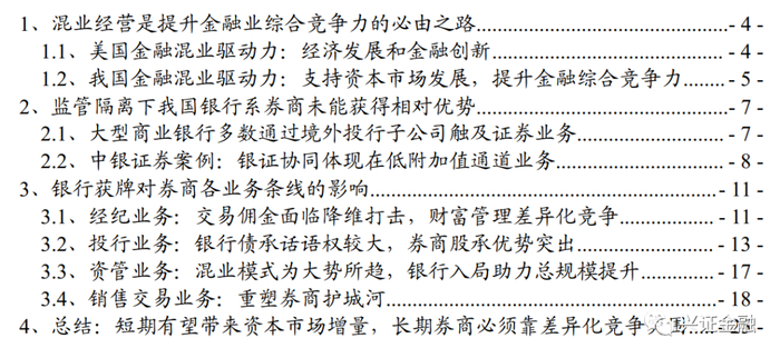 我们认为当前时点重提混业经营的主要驱动力来自以下几个因素:
