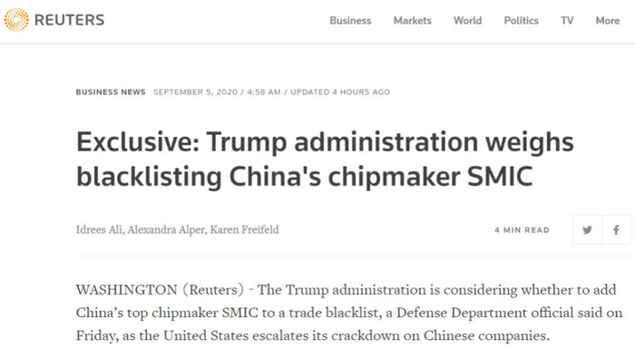 路透社4日援引美国防部消息称,美方正考虑是否将中芯国际(SMIC)列入“贸易黑名单”。一旦被限,对外依赖度极大的中芯国际将得不到应用材料、泛林集团、科磊等美国关键芯片设备商的支持,进而影响其追赶台积电的步伐。