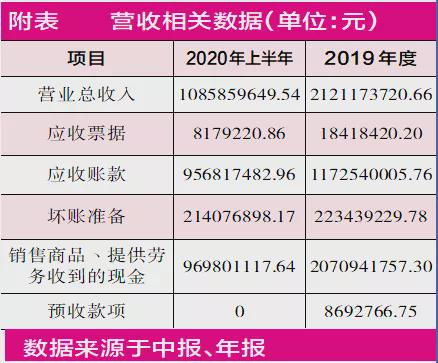 2020年中报显示,其当期实现的营业收入金额高达10.86亿元,然而从其现金收回情况及新增的负债数据看,巨额的营收中,有数亿元去向不明。