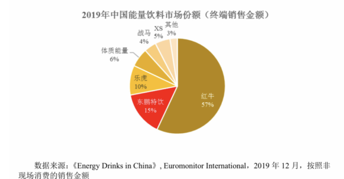 但是,战马目前的品牌价值还无法和红牛相比。根据华彬快速消费品集团公布的2020年上半年业绩,战马能量型维生素饮料产出销售额为7.16亿。而根据欧睿国际的数据显示2019年战马在中国能量饮料市场占有率仅为4%,远低于东鹏与乐虎。作为华彬培育多年的“后手”,战马的表现并不能算亮眼。