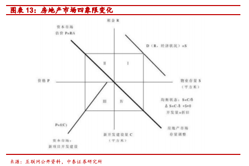 从长期看,在房地产物业市场上,房地产的市场价格应该等于流量租金的折现。我们可以简单的用公式P=R/I来进行估算。其中,分子端R代表了一个租金水平,在这个水平上对物业的使用需求等于建筑物的供给。分母端I代表房地产资产的资本化率,即租金与价格的比值,这是投资者愿意持有房地产资产的当前期望的收益率。
