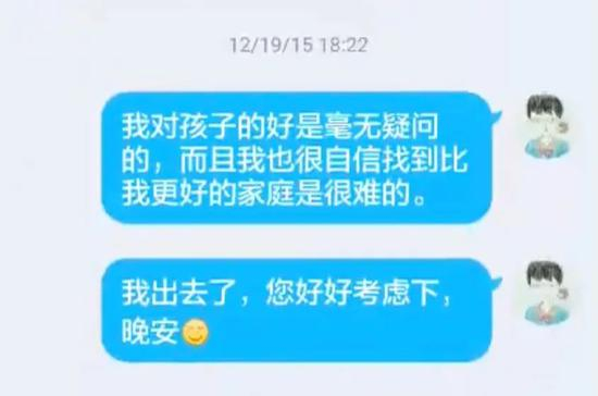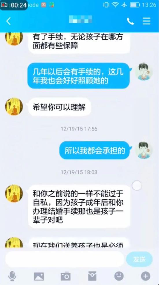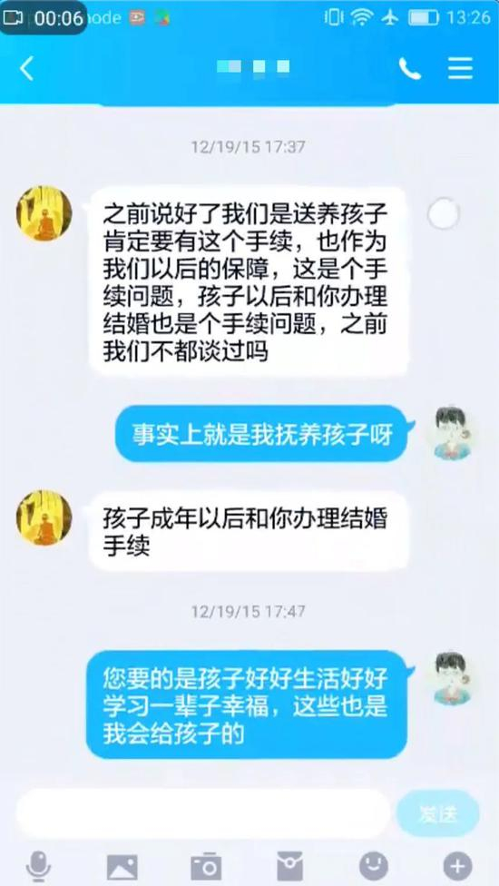“之前说好了,我们是送养孩子,肯定要有这个手续,也作为我们以后的保障,这是个手续问题,孩子以后和你办理结婚也是个手续问题,之前我们不都谈过吗?”