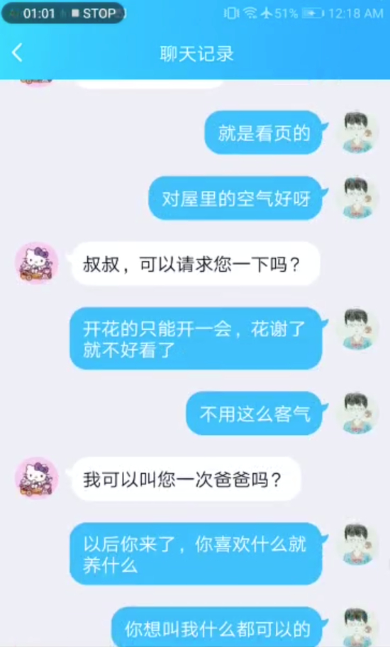 2017年至今,从“叔叔”到“爸爸”,到“女儿+妻子”。现在,一方坚持“女儿”,一方坚持“妻子”。(图据鲍毓明提供的聊天记录)