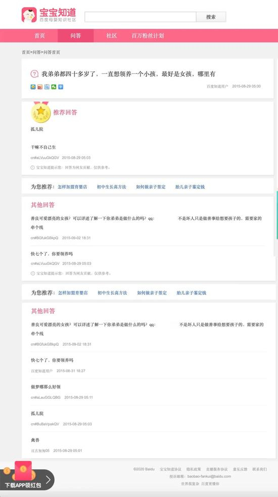 她不只是在天涯发帖。事实上,在注册天涯账号前,刘平安用同一个QQ号,试图联系“宝宝论坛”上的一名收养者。